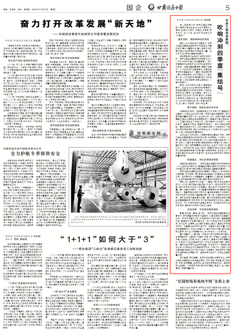 甘肅工程咨詢集團(tuán)堅(jiān)定向改革要?jiǎng)恿σ盍?,加快向市?chǎng)化程度高、綜合競(jìng)爭(zhēng)力強(qiáng)、具有自主造血能力的國(guó)有企業(yè)轉(zhuǎn)型邁進(jìn)。在開展對(duì)標(biāo)一流管理提升、質(zhì)量提升、價(jià)值創(chuàng)造、品牌建設(shè)、企業(yè)家培育等專項(xiàng)行動(dòng)等方面取得實(shí)實(shí)在在的成效。
