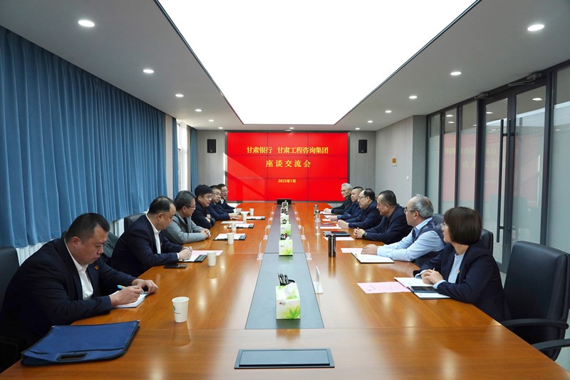 1月15日,甘肅工程咨詢集團(tuán)黨委書記、董事長(zhǎng)張佩峰與來(lái)訪的甘肅銀行黨委書記、董事長(zhǎng)劉青就深化銀企合作座談交流。甘肅銀行領(lǐng)導(dǎo)王錫真、杜晶,甘肅工程咨詢集團(tuán)領(lǐng)導(dǎo)成少平參加。