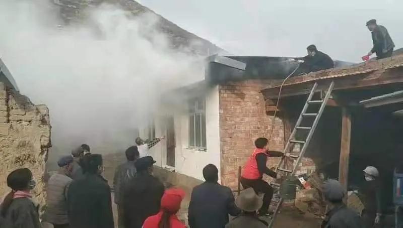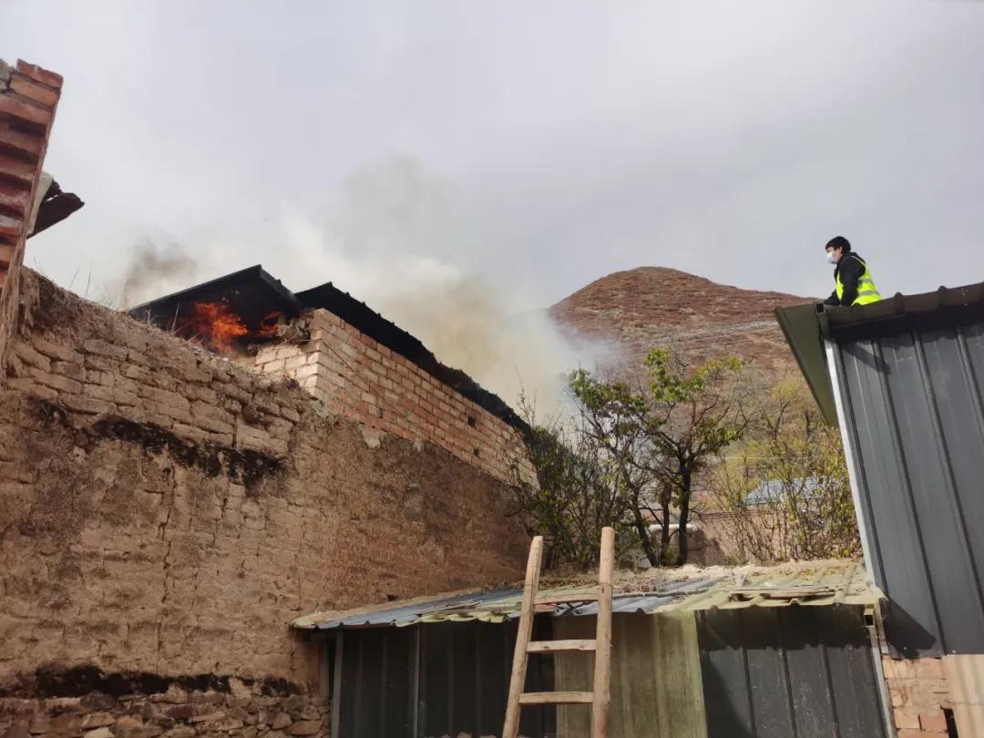 10月30日下午3點(diǎn),交通監(jiān)理公司負(fù)責(zé)幫扶的臨潭縣洮濱鎮(zhèn)馬旦溝村一戶村民家中突然冒出滾滾濃煙,火光在濃煙中忽隱忽現(xiàn)。著火是一座磚木結(jié)構(gòu)彩鋼屋頂?shù)男路?,火從屋頂燒起,越燒越旺。著火的房屋旁邊堆放著多年的老柴火,干燥異常,一絲火星就能點(diǎn)燃,而與著火點(diǎn)緊鄰著的就是布局緊密的鄉(xiāng)親們的房屋,再往外圍則緊接著山林,如果火勢蔓延,后果將不堪設(shè)想。