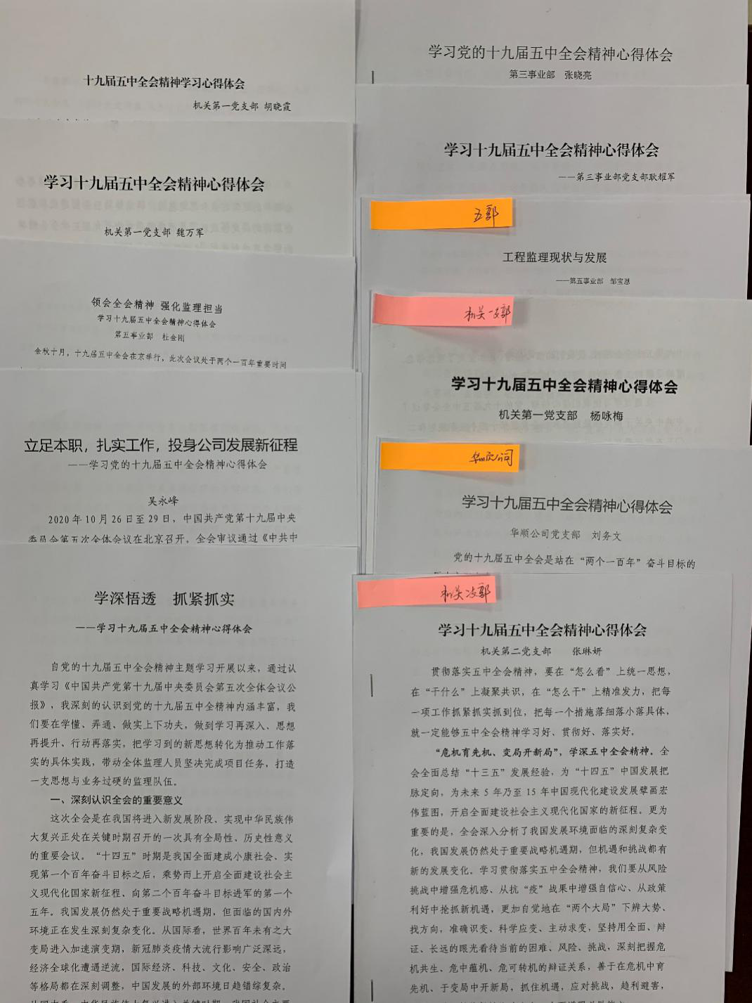 為進(jìn)一步深入學(xué)習(xí)貫徹落實黨的十九屆五中全會精神,擴(kuò)大學(xué)習(xí)覆蓋面,擴(kuò)展學(xué)習(xí)的深度,引導(dǎo)全體黨員干部統(tǒng)一思想、凝聚共識,不斷提振精神狀態(tài)、改進(jìn)工作作風(fēng)、提升工作效能,公司黨委專門發(fā)文對學(xué)習(xí)貫徹五中全會精神進(jìn)行了專題安排,要求全體黨員在黨委理論學(xué)習(xí)中心組學(xué)、支部學(xué)、部門學(xué)、個人自學(xué)的基礎(chǔ)上,自覺撰寫學(xué)習(xí)心得體會,共收集心得體會84篇。從收到的心得體會來看,全體黨員在學(xué)習(xí)貫徹黨的十九大五中全會精神過程中動腦、入心,做到了做到學(xué)有所思、學(xué)有所慮、學(xué)有所得、學(xué)有所做。