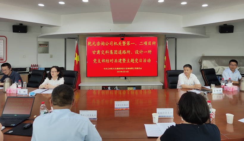 為認(rèn)真貫徹落實(shí)黨的十九大和十九屆歷次全會精神及省第十四黨代會精神,創(chuàng)新基層黨建工作載體,提高基層黨建工作水平,進(jìn)一步鞏固黨史學(xué)習(xí)教育成果,6月16日,蘭州乾元交通規(guī)劃設(shè)計(jì)咨詢有限公司機(jī)關(guān)、第一項(xiàng)目所、第二項(xiàng)目所黨支部與甘肅交科集團(tuán)設(shè)計(jì)一所、道路所黨支部聯(lián)合舉辦了主題為“支部共建聚合力 互促共贏雙提升”的結(jié)對共建暨主題黨日活動。