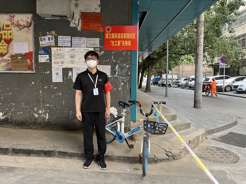 “你好,目前這里不允許人員進(jìn)出,請問有什么事嗎?”這是志愿者權(quán)浩每天重復(fù)無數(shù)次的提問。本輪疫情發(fā)生以后,他就主動請纓,根據(jù)安排前往吳家園社區(qū)家具四場值守點進(jìn)行卡點值守任務(wù)。他所負(fù)責(zé)值守的卡點情況復(fù)雜,封控區(qū)域內(nèi)居民、租戶、獨居老人較多,卡口附近有藥店、菜鋪,因此很多居民都想外出采購。每每遇到這樣的情況,他總是耐心地向居民解釋防疫政策并盡力提供幫助。權(quán)浩表示,疫情當(dāng)前,作為社區(qū)居民健康的守護(hù)者,深知自身工作的重要性和肩負(fù)的責(zé)任,面對各種困難,他都會積極協(xié)調(diào)、認(rèn)真處理?!肮ぷ髦形覀兾⑿Χ嘁恍?、態(tài)度好一點,居民的理解和信任也就多一些。我會爭取讓群眾理解和配合我們的工作,我相信在大家的共同努力下,疫情終會退去?!焙唵蔚脑捳Z中,透出的是他樂觀積極的心態(tài)和甘于奉獻(xiàn)的決心。