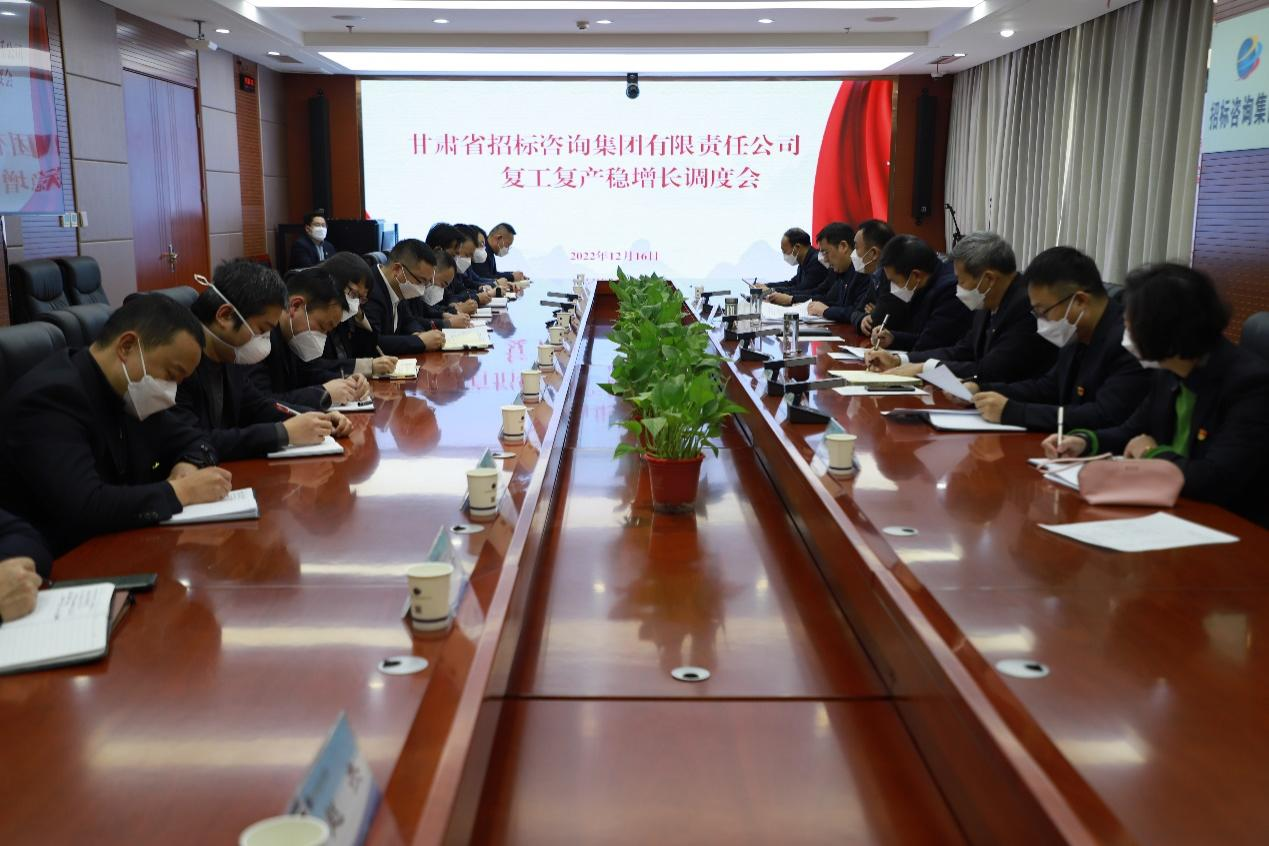 近日,甘肅省招標(biāo)咨詢集團有限責(zé)任公司召開復(fù)工復(fù)產(chǎn)穩(wěn)增長調(diào)度會,傳達學(xué)習(xí)全省工業(yè)復(fù)工復(fù)產(chǎn)穩(wěn)增長調(diào)度會和集團公司復(fù)工復(fù)產(chǎn)穩(wěn)增長調(diào)度會精神,分析1-11月生產(chǎn)經(jīng)營情況,安排部署近期及來年相關(guān)工作。會議由公司黨委書記、董事長牛茺主持。招標(biāo)咨詢集團領(lǐng)導(dǎo)班子成員、機關(guān)各部門及各子公司負責(zé)人參加會議。招標(biāo)中心、金安公司作交流發(fā)言。