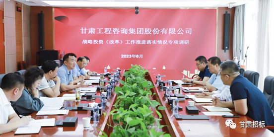 6月13日,甘肅工程咨詢集團黨委委員、副總經(jīng)理劉立昱,董事會秘書柳雷,戰(zhàn)略投資部(改革辦)部長馬靈會一行到招標咨詢集團對戰(zhàn)略投資(改革)工作推進落實情況、董事會建設(shè)和運行情況開展專項調(diào)研。