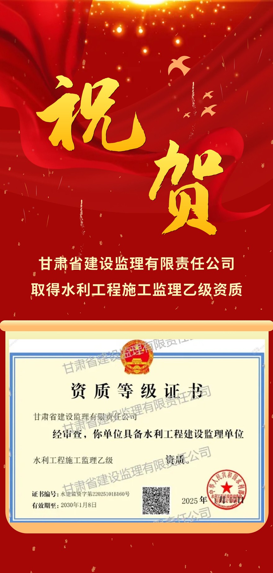 省建設(shè)監(jiān)理公司取得水利工程施工監(jiān)理乙級(jí)資質(zhì)